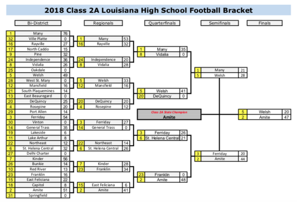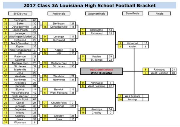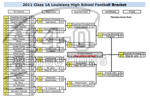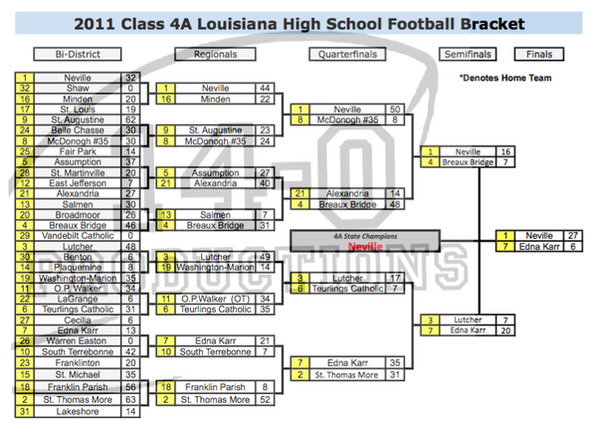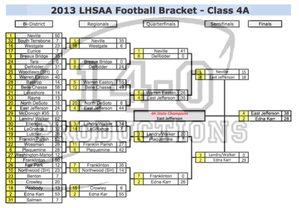 In 2013, the LHSAA split the playoffs between 'select' enrollment and 'non-select' enrollment schools.